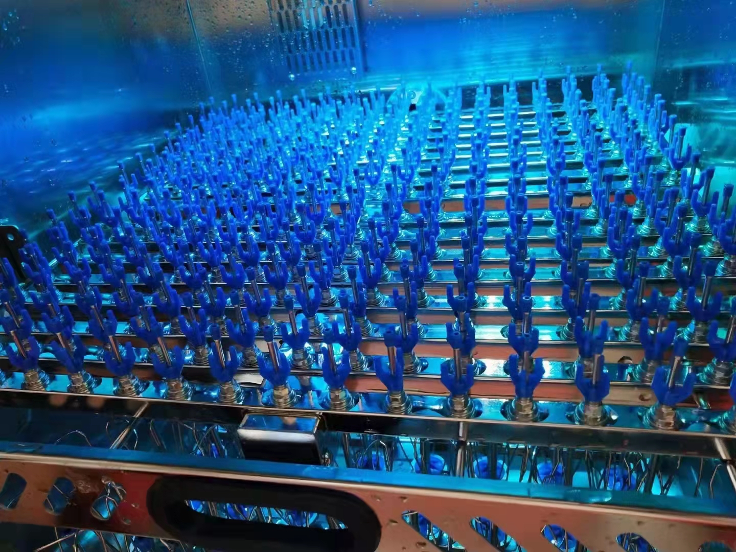 2*600L/MIN雙大流量雙循環(huán)噴淋系統(tǒng)設(shè)計(jì),上下獨(dú)立噴淋,清洗倉(cāng)水簾分布均勻360°,移液管內(nèi)外壁與大肚處均無(wú)死角,清洗效果可驗(yàn)證。清洗后可干燥,可以快速,潔凈的烘干移液管內(nèi)外部,避免二次污染。