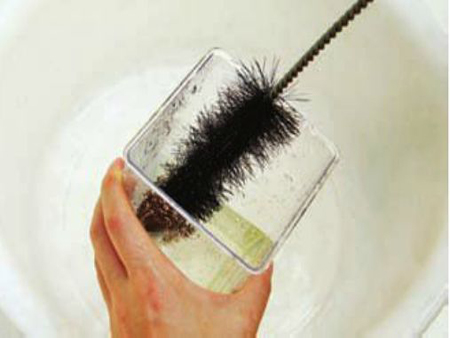 隨著實驗種類的不斷增多,結晶物、化學溶液、加熱后產生的膠著固體,甚至是腐蝕性殘留物附著在器皿上,都在不斷地考驗這我們的清洗人員。而在實驗室中代代相傳的人工清洗方式,實驗人員戴上醫學手套使用燒杯刷燒杯刷在燒杯內壁上旋轉而實現對燒杯的清洗。對于不同的污染物富含大量表面活性劑的,需要在刷洗后使用大量的的純水進行沖洗,以沖掉附著字瓶皿內外表面的表面活性劑成分,如果清洗大量燒杯時,需要浪費大量的水資源。