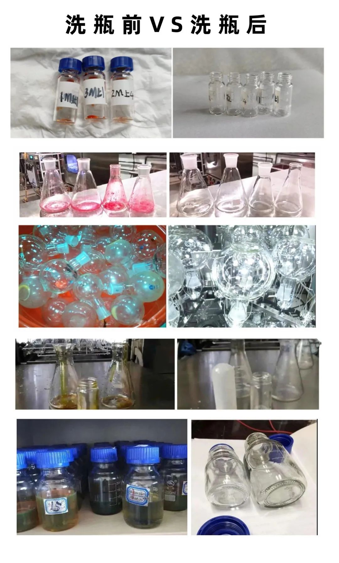 我們先看看圖,日常實(shí)驗(yàn)用的瓶瓶罐罐,如:進(jìn)樣瓶、取樣瓶、三角瓶、培養(yǎng)皿、移液管等,都可以洗凈。而且污漬不管是培養(yǎng)基、油污類、顏料/染料/色素類、血液/干血漬類,還是有機(jī)溶劑、小分子類等都能被它輕松洗凈。