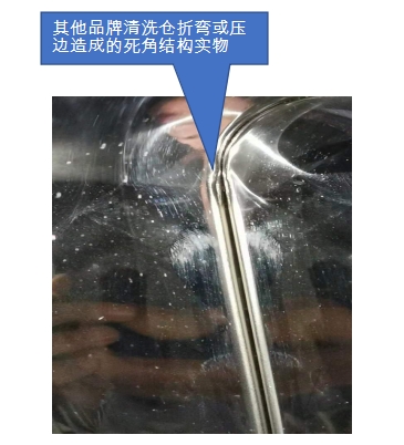 | 倉(cāng)體不會(huì)藏污納垢 | 體內(nèi)部均采用滿焊結(jié)構(gòu),無折彎或壓邊造成的死角縫隙。在清洗過程中很容易進(jìn)行倉(cāng)體內(nèi)壁的自凈清洗,不會(huì)有死角或細(xì)縫藏污納垢,不會(huì)造成器皿的二次污染。 |